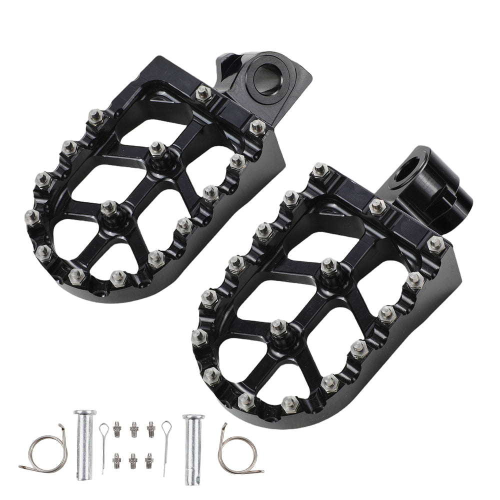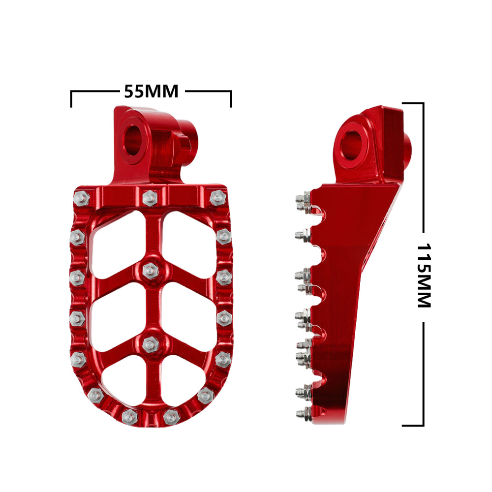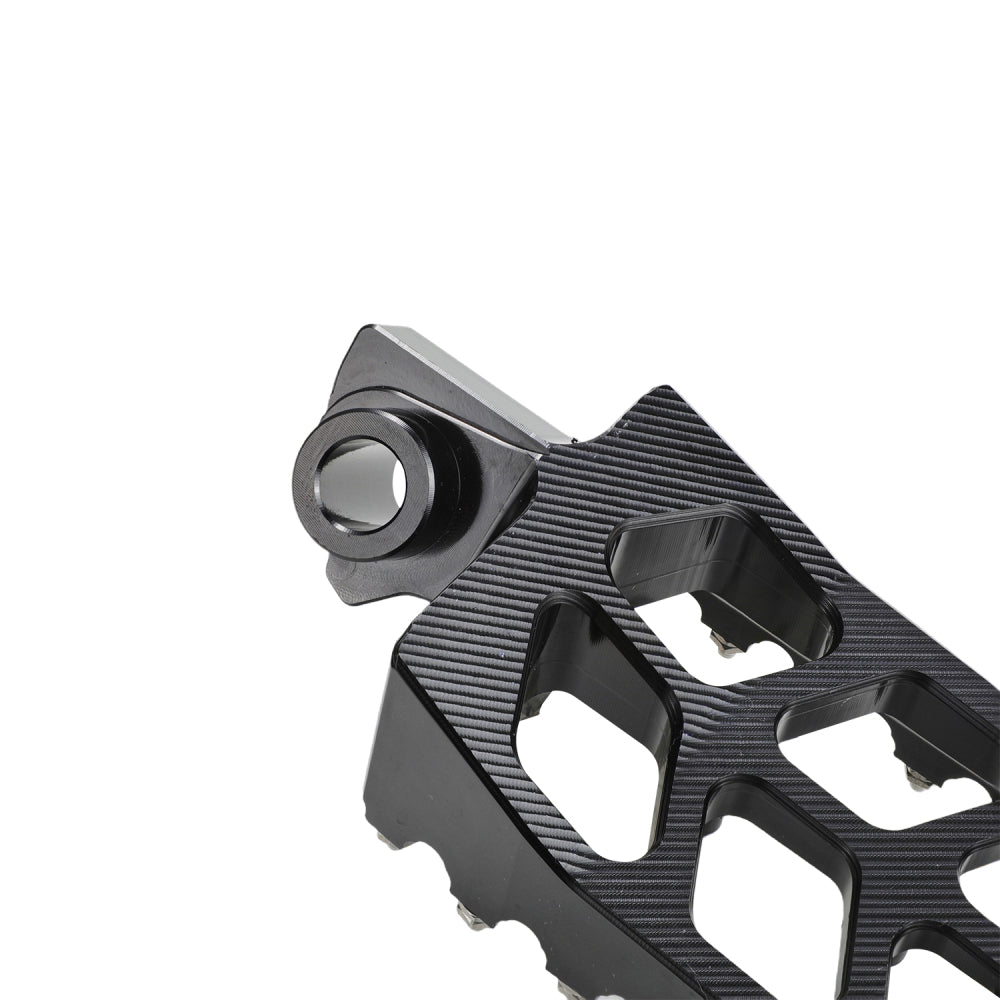 Upgraded surface area compared to OEM foot pegs, offering a larger force-bearing platform. Provides improved stability and control during riding, especially on rough or uneven terrain.